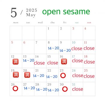 GW明け5月の予約状況です