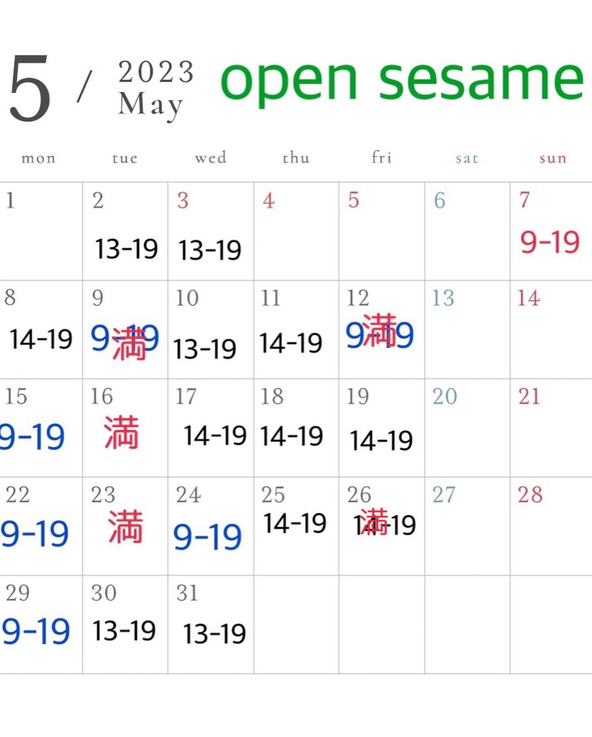 5月の予約状況